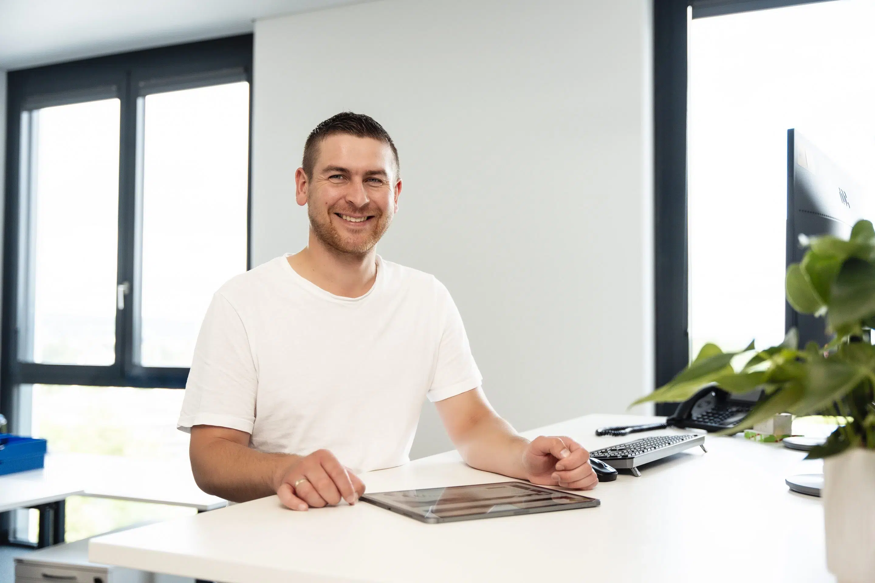 • Einen modernen Arbeitsplatz mit viel Platz, großen Fenstern, höhenverstellbaren Schreibtischen und klimatisierten Büroräumen